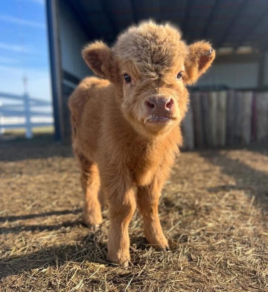 James is a striking male Mini Highland calf with a calm temperament and classic Highland charm. Bred for both quality and character, he features a thick, fluffy coat, compact frame, and strong genetics that make him an excellent addition to any small farm or family ranch. His rich coloring and expressive eyes give him that signature “teddy bear” look Mini Highlands are loved for.